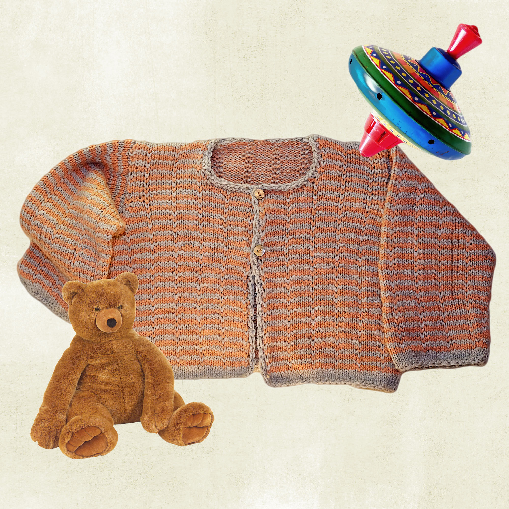 Babykofta med ribbmönster är ett stickmönster som bland annat passar garnet Sesia Baby Alpaca . Sesia Baby Alpaca är ett garn i enbart alpacka-ull. Man stickar koftan fram och tillbaka. I grundmönstret stickar man varje del för sig och syr sen ihop, men det går också bra att sticka framstycken och backstycke samtidigt. Ärmarna stickar man enskilt och syr sen fast. Efter att du stickat klart koftan, så virkar du kanterna runt om.