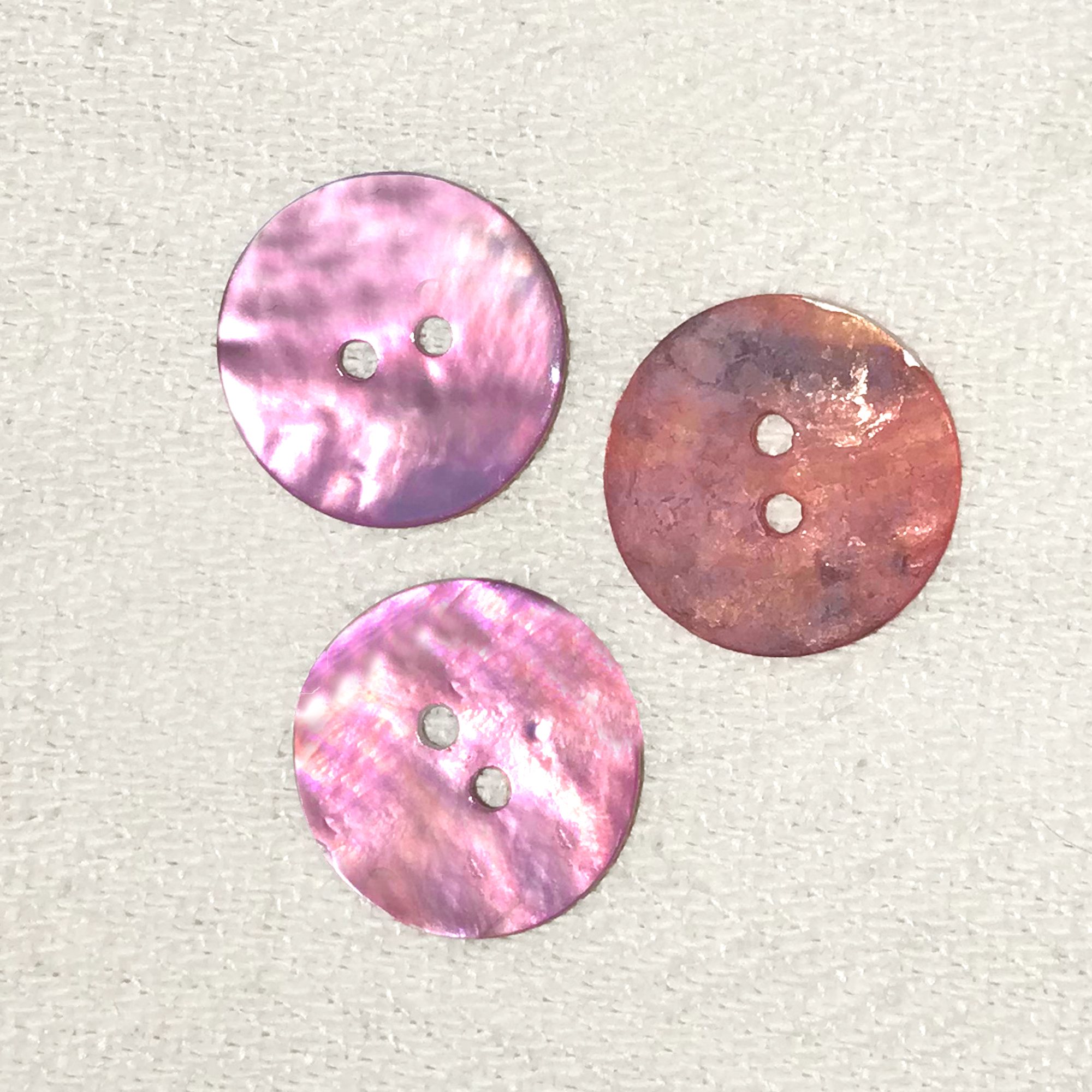 Pärlemor Rosa 20mm Blank. med två hål. Blank och lätt välvd.