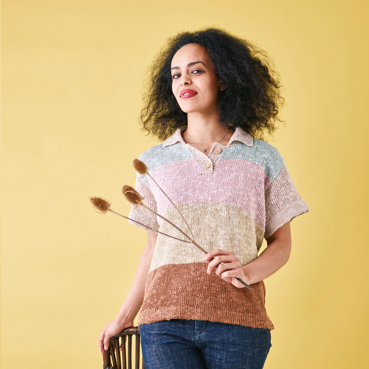 Piké-tröja dam är ett stickmönster på en kortärmad tröjan som man stickar med lite pikè-krage och en slits med knappar i halsen. Ärmarna är isydda. Kanterna är i slätstickning och uppvikta med fåll. Stickmönstret finns i storlekar dam S – L.